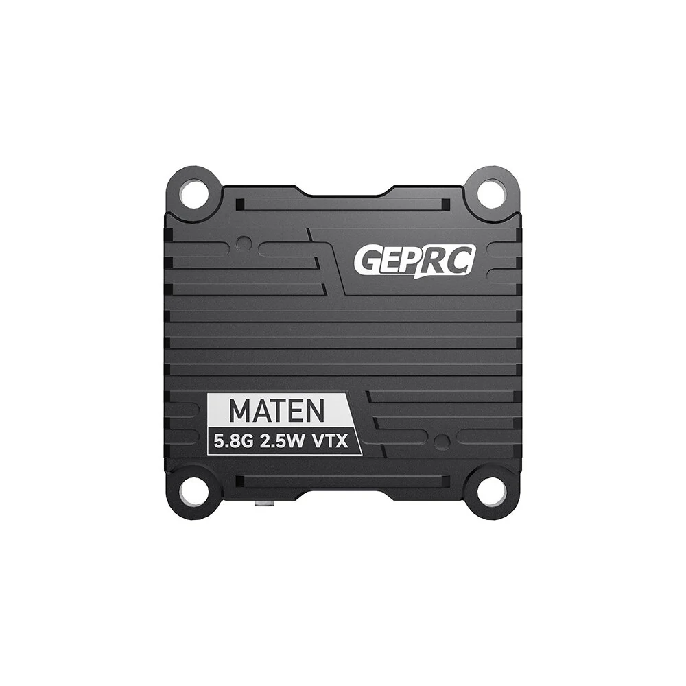 The MATEN 5.8GHz 2.5W VTX high-power image transmission newly developed by the GEPRC team is now officially released. Its performance is very powerful, with 5 adjustable power levels and a maximum power of up to 2500mW.The transmission signal is very stable and the penetration ability is excellent.