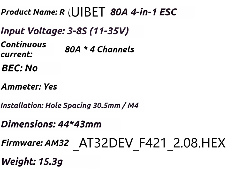 Model: F405 Flight Controller 8S AM32 80A 32-bit ESC Stack