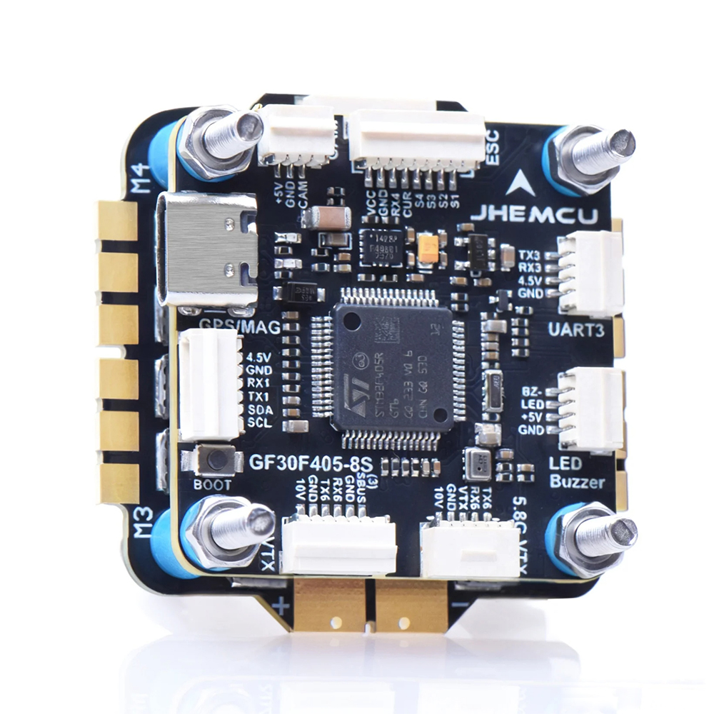 30.5×30.5mm JHEMCU F405 Flight Controller 8S AM32 80A 32-bit ESC Stack Support GPS WS2812 Programmable LED for RC FPV Racing Drones