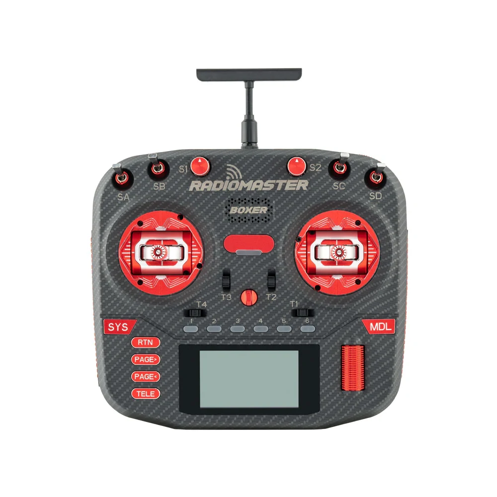 The Boxer Max Radio comes with a carbon fiber pattern case with AG01 hall gimbalsand CNC buttons and roller as standard. An adjustable length CNC metal folding handle, upgraded leather grips and included bonus RadioMaster neck strap to provide a comfortable user experience. Enjoy the superior performance with the Boxer Max Radio!