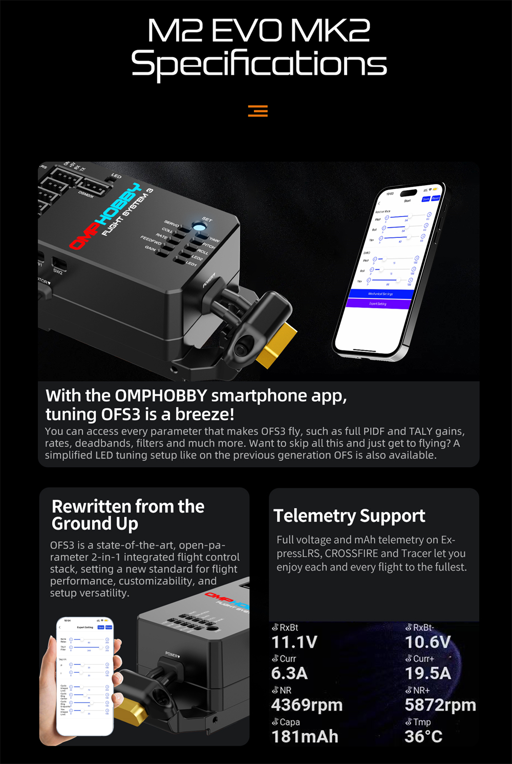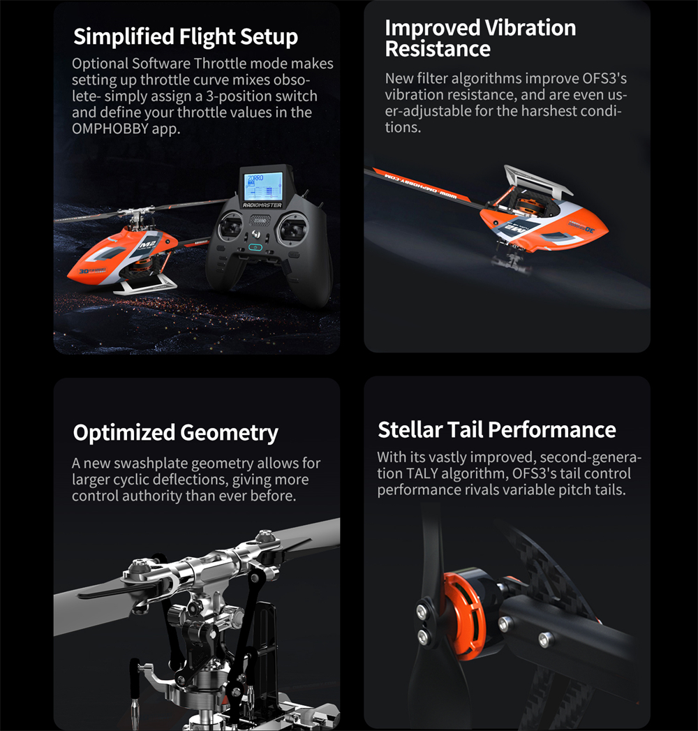 1> Precision Flying Experience: Equipped with OFS3 flight control system, this helicopter offers unmatched stability, telemetry support, and precise throttle configuration through the OMPHOBBY app.