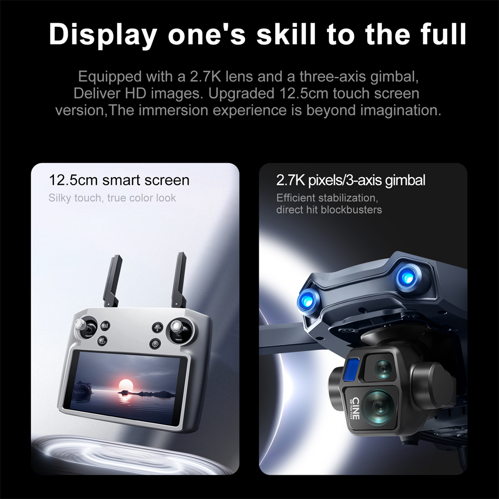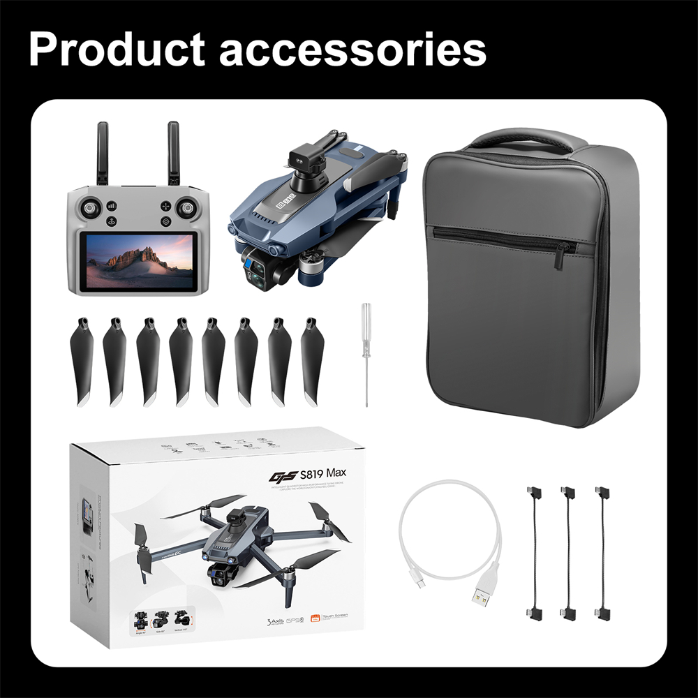 YLR/C S819 PRO GPS 6KM 5G Repeater Digital FPV with Real 2.7K HD Camera 3-Axis EIS Mechanical Gimbal 360° Obstacle Avoidance 5inch Touchable LCD Screen Controller Brushless Foldable RC Drone Quadcopter RTF