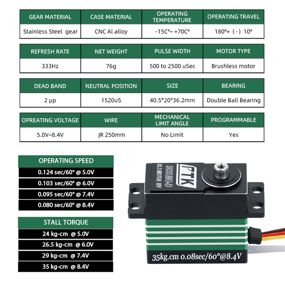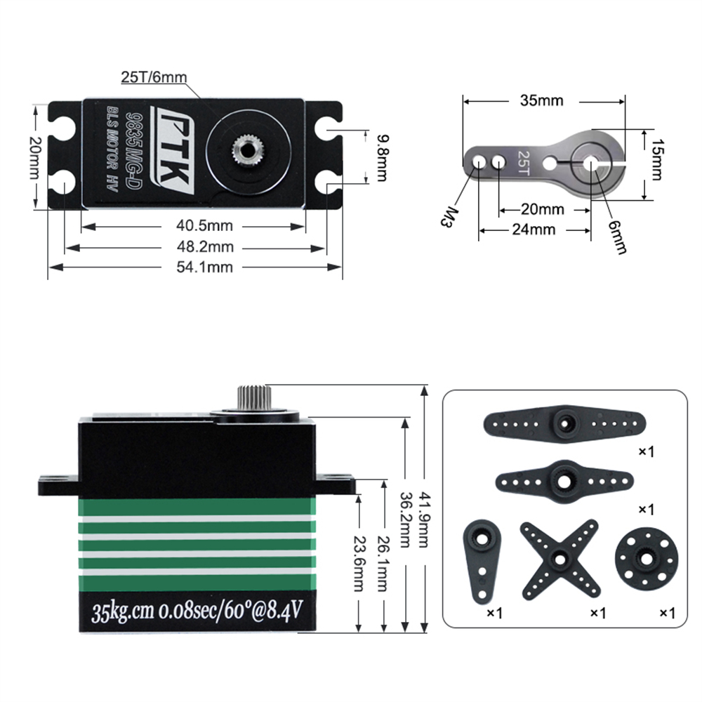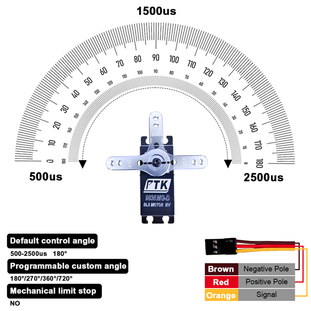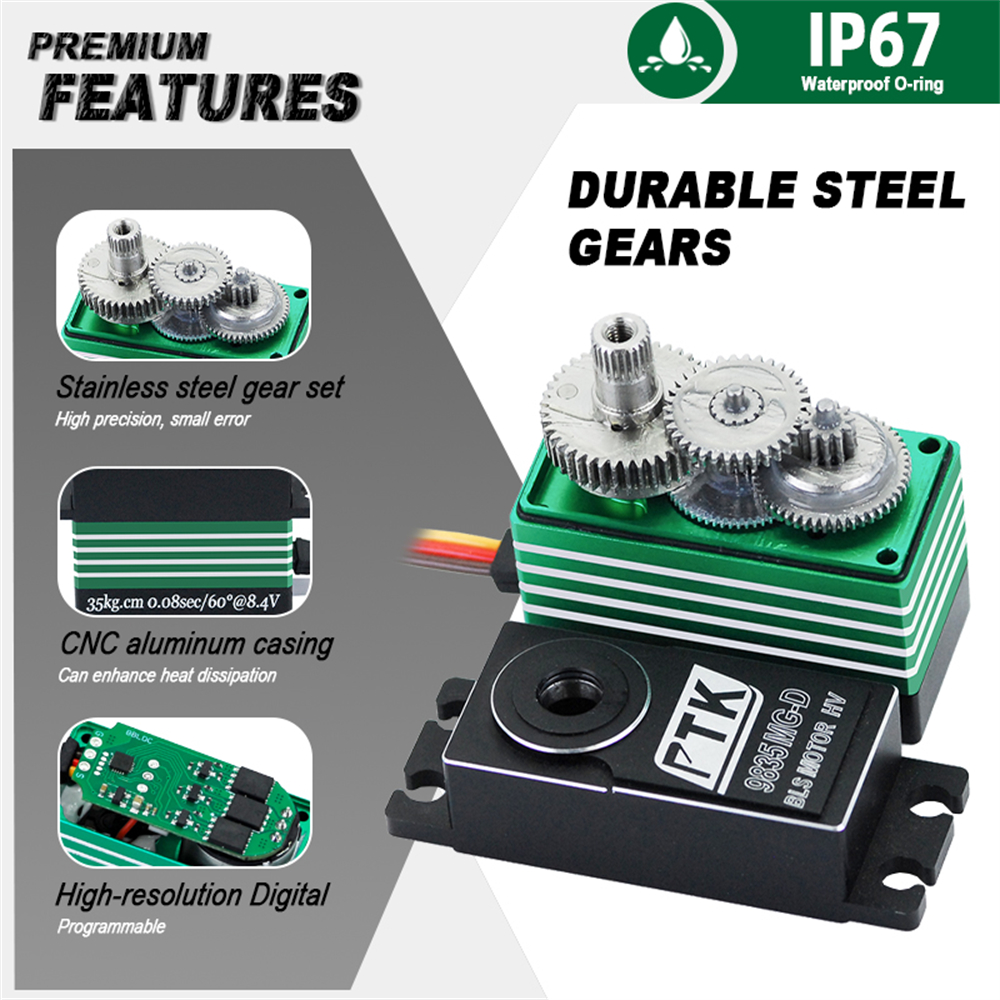 PTK 9835 MG-D 35kg High Torque All-Metal Waterproof Brushless RC Servo for Remote Control Car Model Fixed-Wing Drones